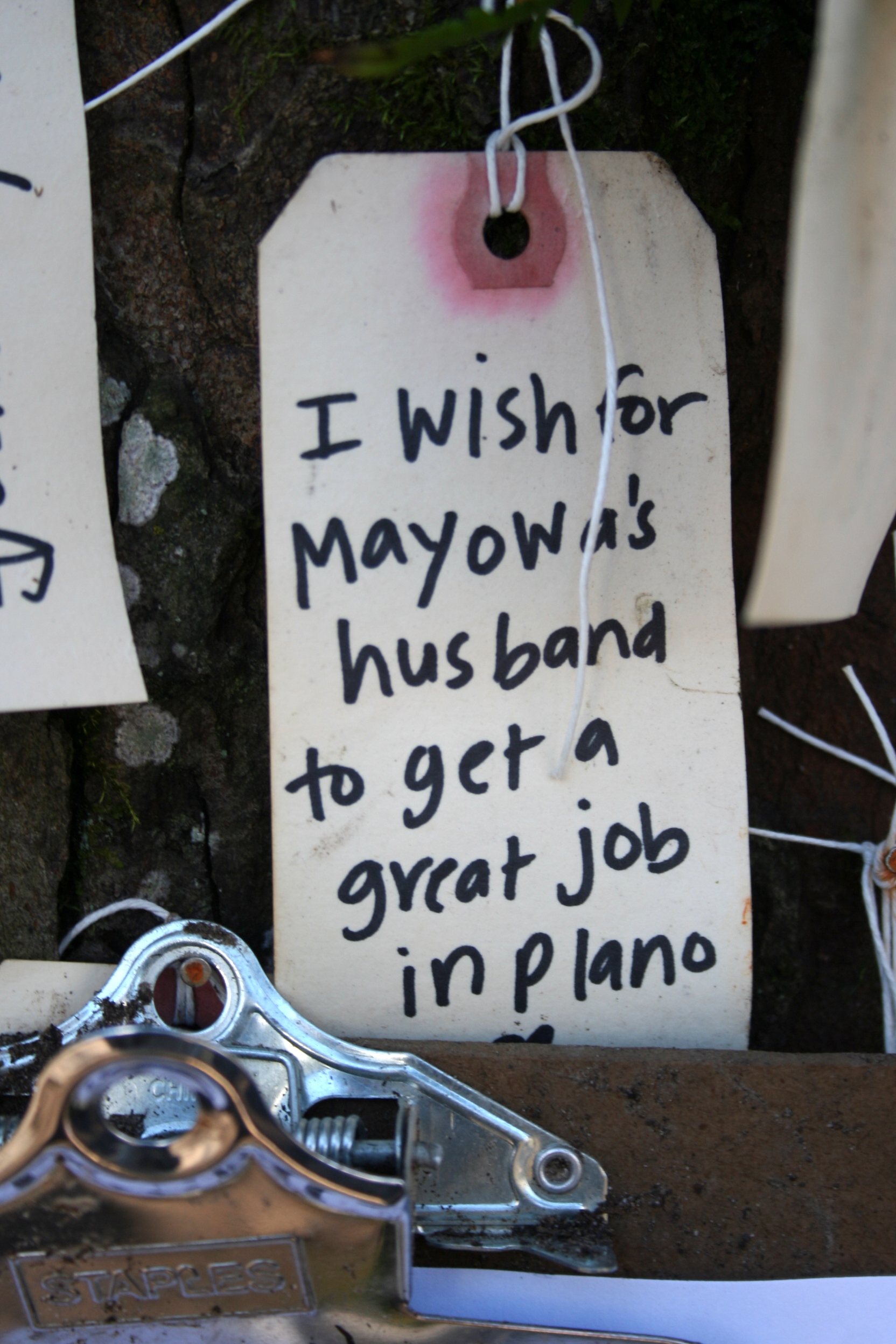 As I walked around the tree reading tags and snapping photos, I realized this was something I wanted to share with you, friendly readers. So here you are. Wishes hung to spin in the breeze.