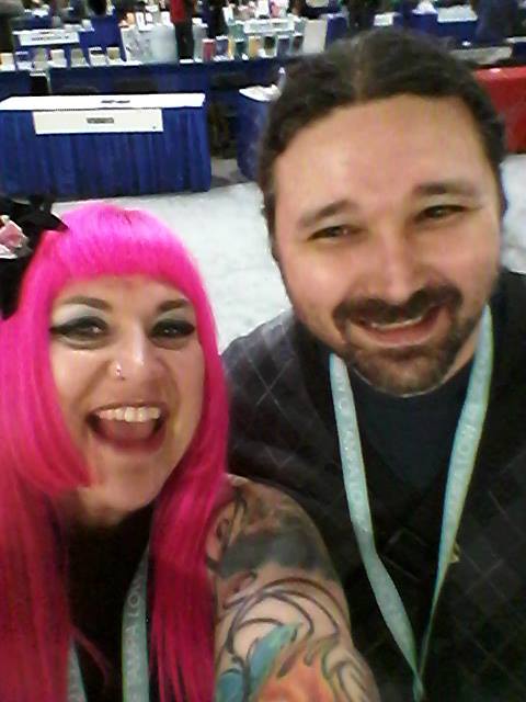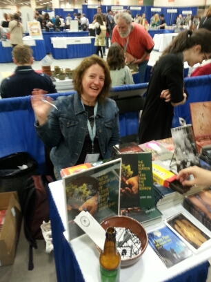 I browsed awhile longer and sent some emails and did some more work, and then they shut down the bookfair. As I was being ushered out of the room under the darkened lights, I stumbled across the Zoetic Press and Paper Nautilus Press tables, where I was delighted to find Allie Marini Batts!