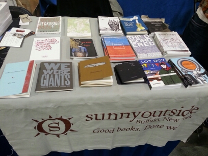 Still reeling from that awesomeness, I headed back to the bookfair, where I met a bunch of amazing folks, hung out at the sunnyoutside press table for a while, chatted up my own books, and got some other folks’ books signed (including Excavations by Wendy Ortiz!).