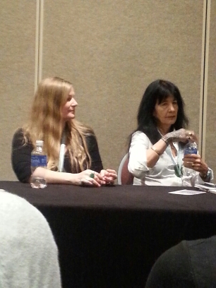 I was headed to Debra’s panel on the ethics of writing secondary characters in creative nonfiction, but I spotted Debra outside and was delighted to chat with her a bit before the panel. That panel, by the way, was amazing, with a killer talk from Emily Fox Gordon. I learned a lot that I’m eager to share with my students.