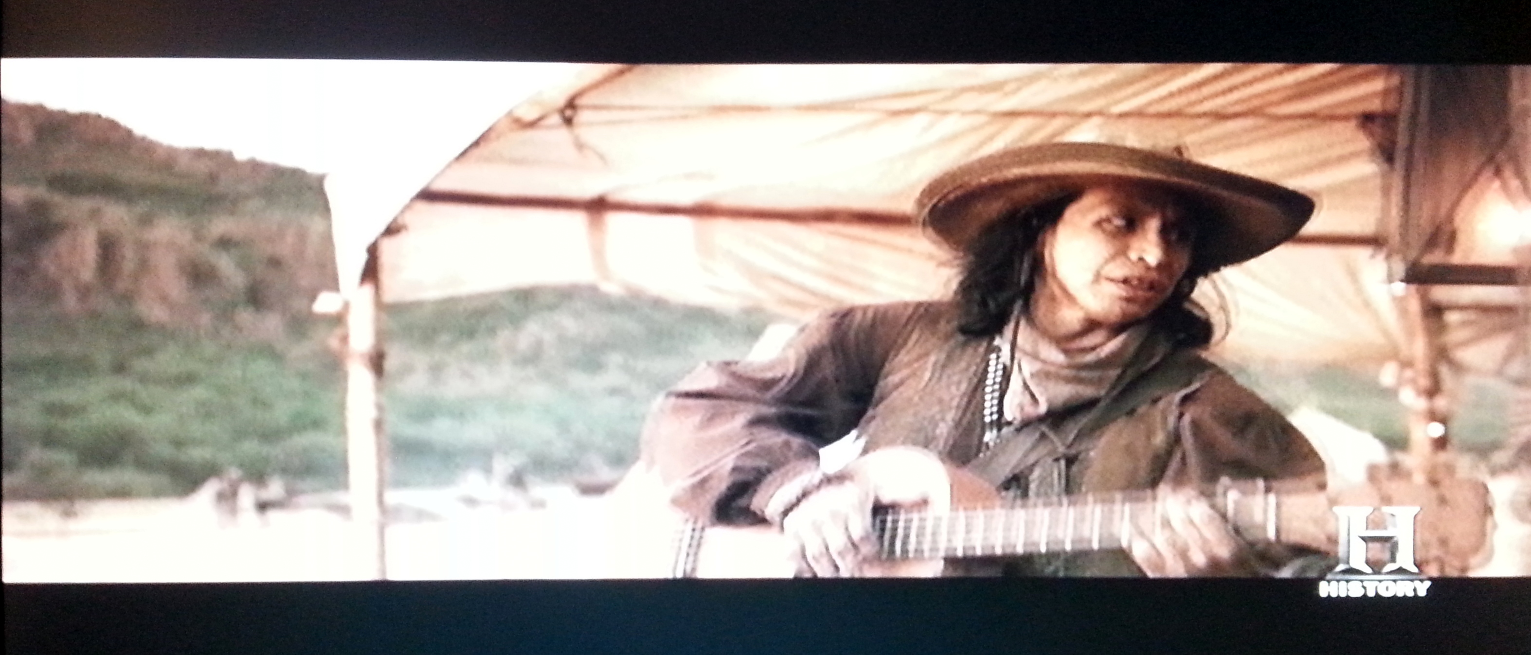 In this third episode, not quite halfway in, Emily West finally resolves herself, Hamlet-like, to kill Santa Anna — and of course, as in history, she fails. But then, several minutes later and exactly halfway through the episode, we are at the Texas camp, where the Army is preparing to march to battle the next day, and there’s the sound of a guitar and men stamping feet and clapping. For those not in the know, the tune being played in the scene is “The Yellow Rose of Texas.”