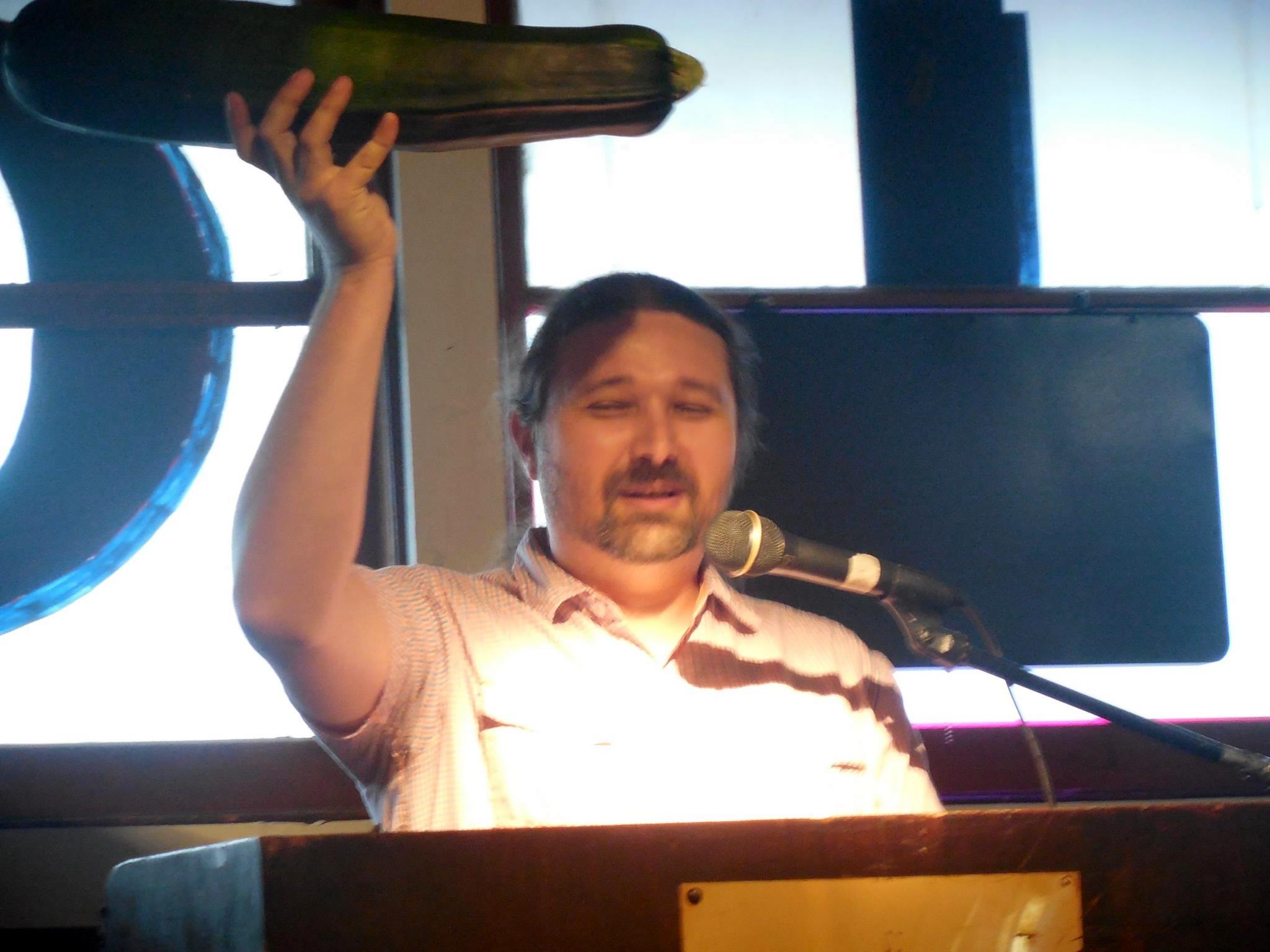 The massive zucchini a Post regular brought in from his grandmother’s garden; I borrowed it and declared it the Reading Mascot.