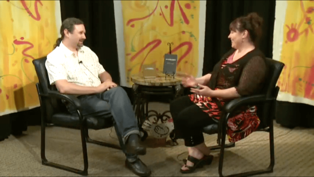 Lynda Phillipi and I chatting on McMinnvile, Oregon’s Arts Alive! program, August 2014. (click the image to view the YouTube video)